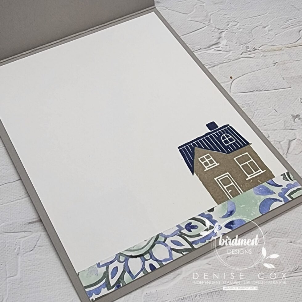 - Cut a piece of Basic White cardstock 4″ x 5-1/4″ for the inside of the card