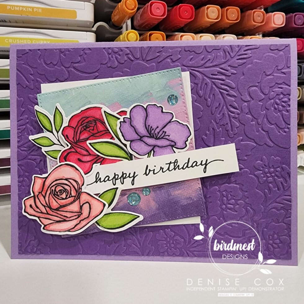 This birthday card is full of fun & fabulous flowers and I am excited to be sharing it with you! I am so happy with how it came together. I’ve included the step-by-step instructions if you want to recreate this Happiness Abounds birthday card too. Be sure to leave a comment below … I love hearing from you ❤