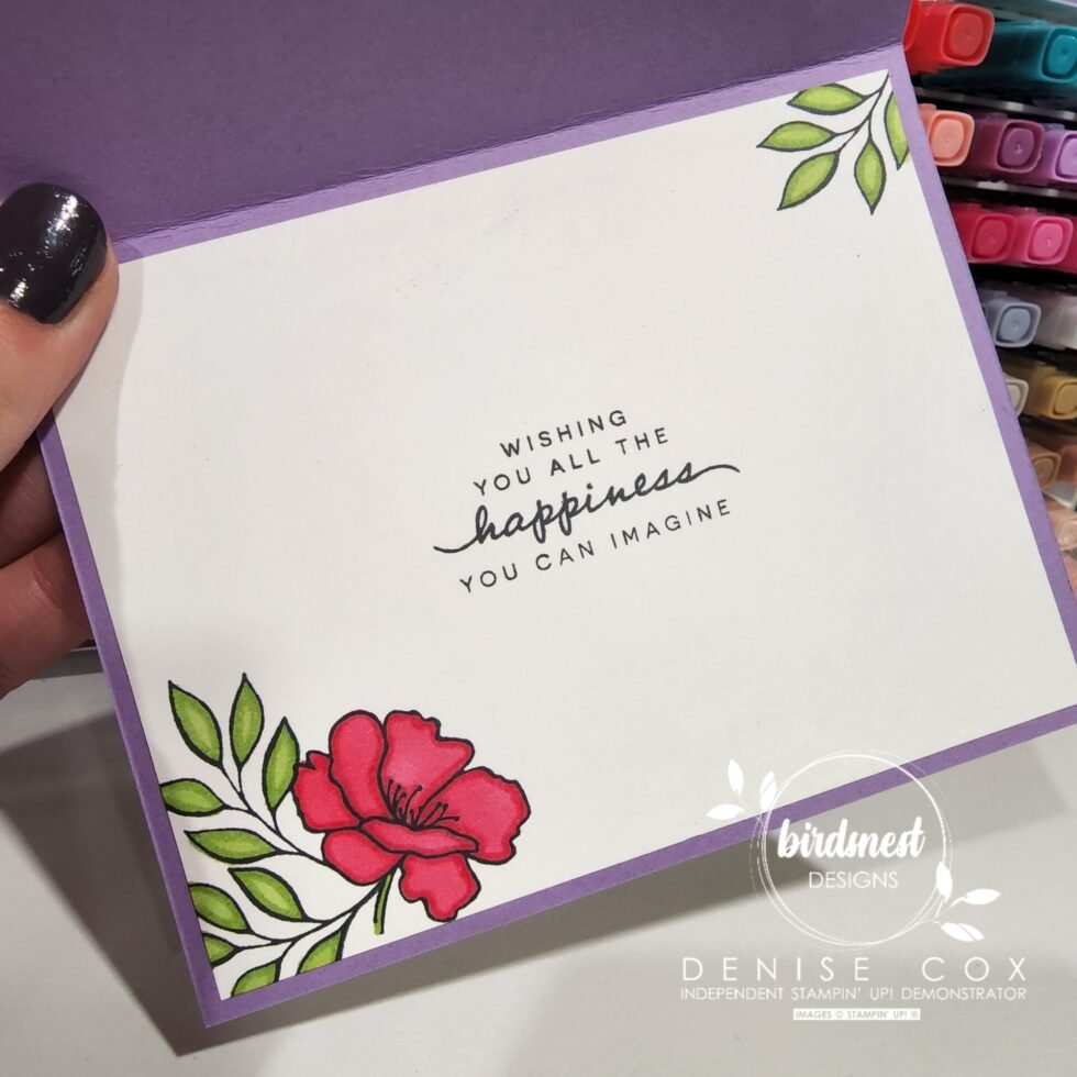 - Don’t forget to add a little touch to the inside of your card too … see below how I added stamped images to the 4″ x 5-1/4″ Basic White insert