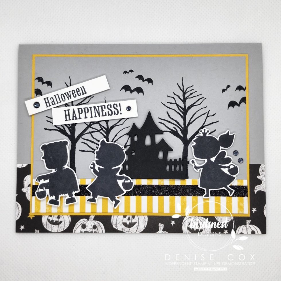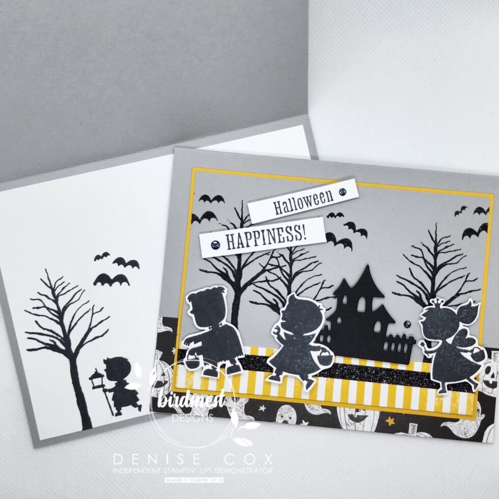 Hello friends it’s so nice to see you!  Today I have a super cute Halloween card to share using Stampin’ Up! Scary Cute bundle.  This is the card that I shared on my Facebook Live Tutorial Tuesday this afternoon on my Birdsnest Designs Facebook page.  Halloween paper crafting is so much fun especially when you have awesome products to work with.