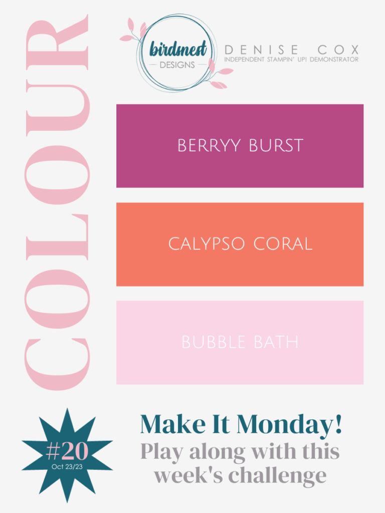 Welcome to Make It Monday it’s time for this week’s creative challenge post. I have used this week’s colour challenge of Berry Burst, Calypso Coral and Bubble Bath to create a beautiful card with Stampin’ Up! Heartfelt Hexagon bundle. Both the bundle and the Delightful Floral Designer Series Paper that I used to create today’s card can be found in the online exclusives section of my Stampin’ Up! store. To view all of these fabulous products just click HERE.