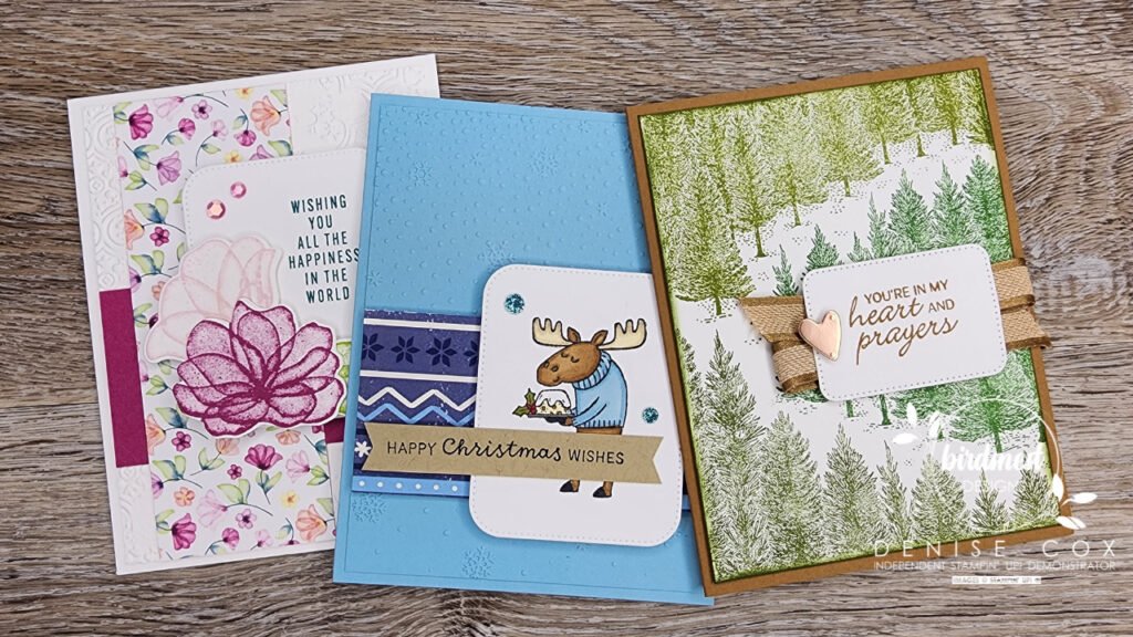 Today I am sharing the three cards that make up this week’s Cards By Mail free class. This is my class kit that you can get for free when you place a $35+ (before shipping & taxes) order in my online store this week (October 25 – 31). To get the free class with your order all you need to do is add host code TWHDMBVT.