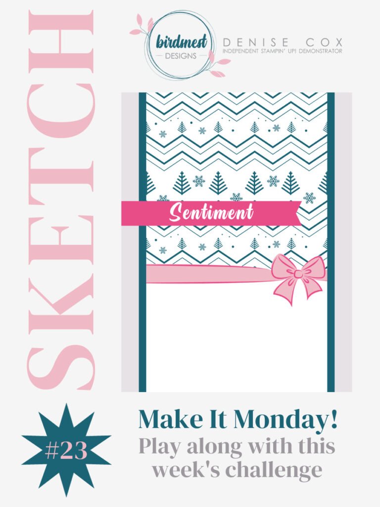 Welcome to Make It Monday it’s time for this week’s creative challenge post. I have used this week’s sketch challenge to create a fun Christmas card with the Stampin’ Up! Festive & Fun stamp set. I will be featuring this adorable set all week.