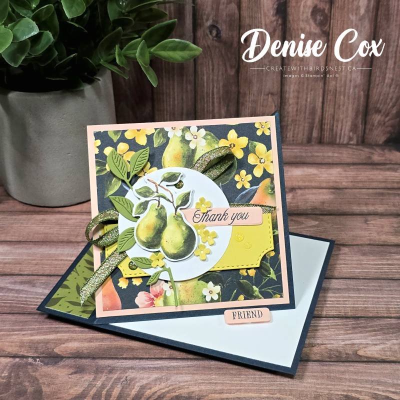 The Painterly Pears Suite bursts with freshness and cheer! The beautiful DSP provides a gorgeous backdrop for the sweet pear imagery and pops of Darling Duckling and Petal Pink.