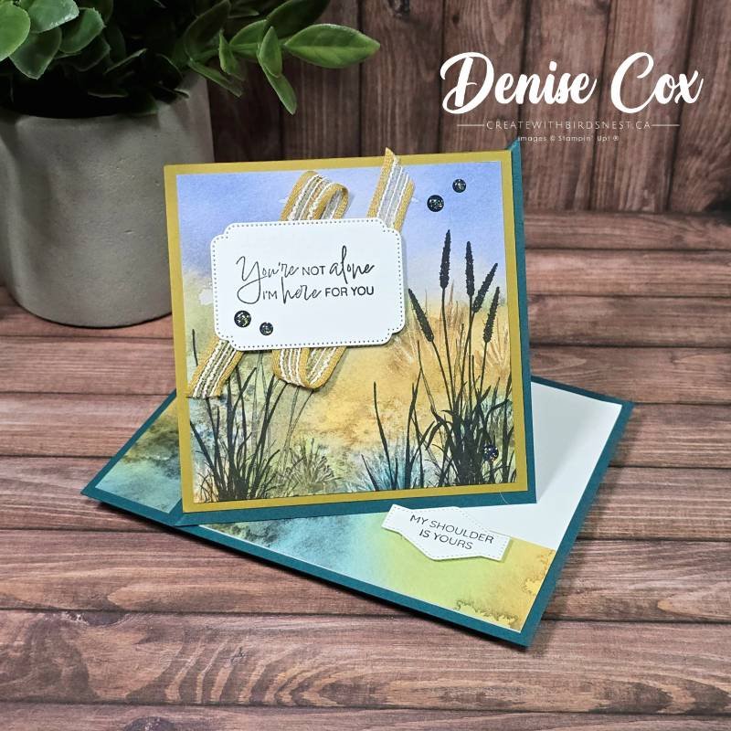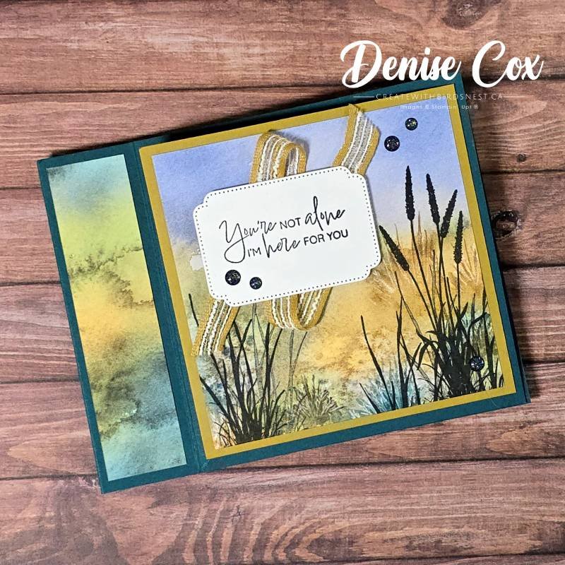 This peaceful card design shows just how versatile this fun fold can be. I paired soft nature tones with the serene imagery from the Prairie Grass stamp set to create a calming, supportive card that’s perfect for a friend in need. The ribbon detail and simple sentiment make it warm and heartfelt without being fussy.