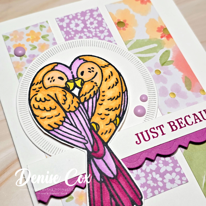This first card uses the Feathered Fun stamp set and has a soft, heartfelt feel. The image naturally fits the circle die cut and creates a gentle focal point that works beautifully for “just because,” thinking of you, or encouragement cards.