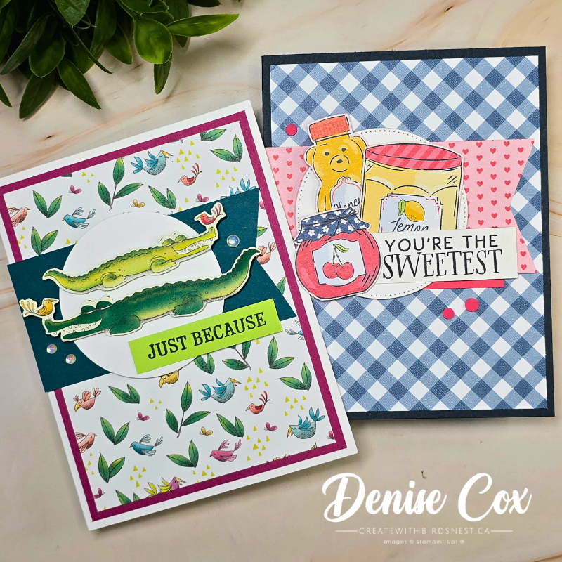 And if you do make a card using the sketch, I’d love to see it! Leave me a comment and tell me which card you like best — the sweet jam jars or the playful crocodiles.
