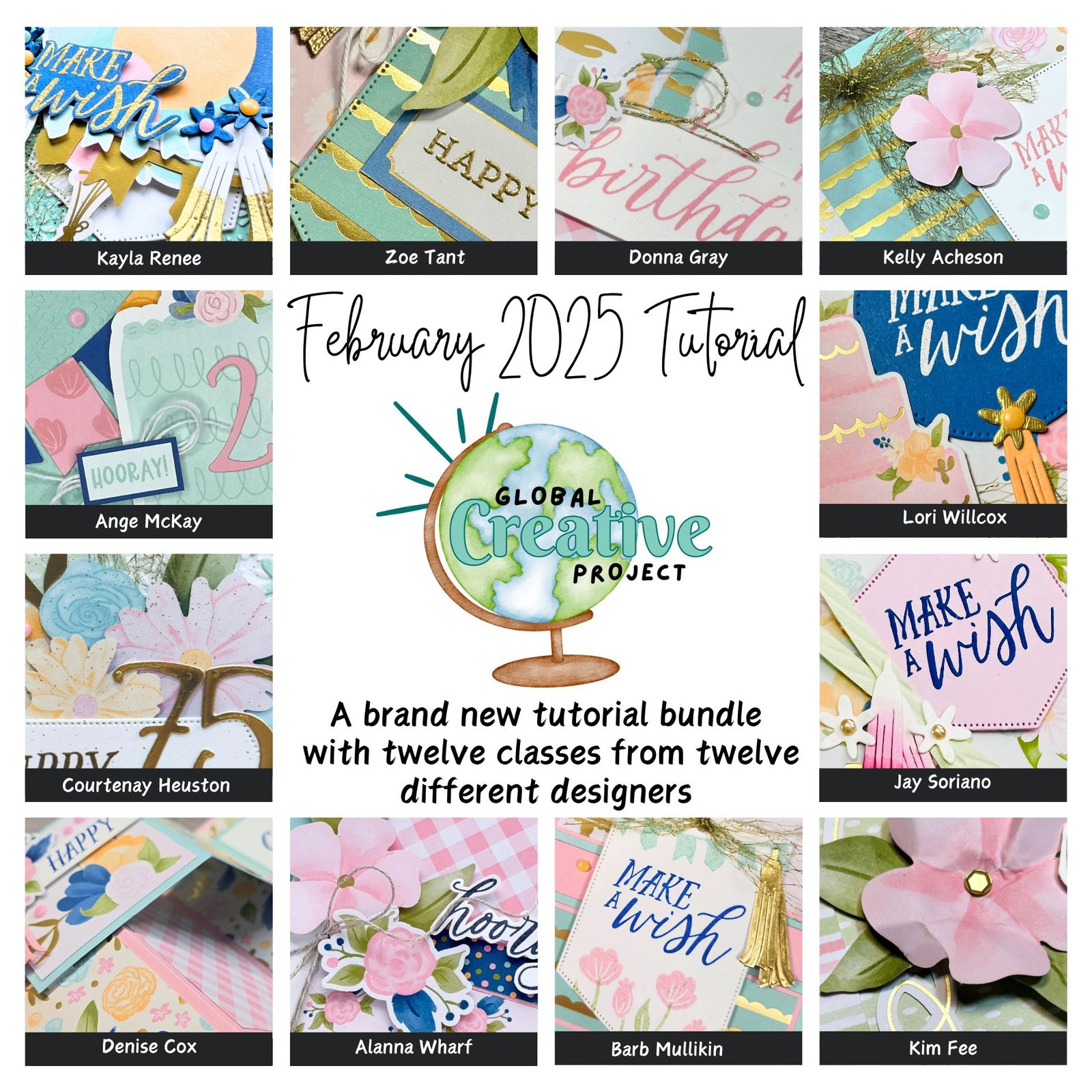 The February 2025 Global Tutorial Bundle features 12 beautiful card designs using the Wildflower Birthday Suite. You’ll receive a detailed PDF with photos, supplies, and measurements, plus access to exclusive video tutorials for each project. Perfect for all occasion crafting!